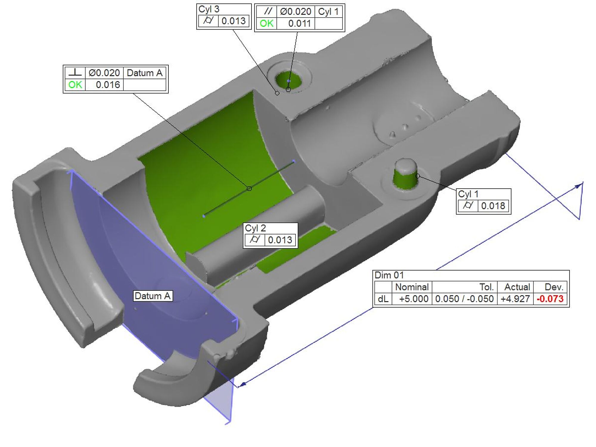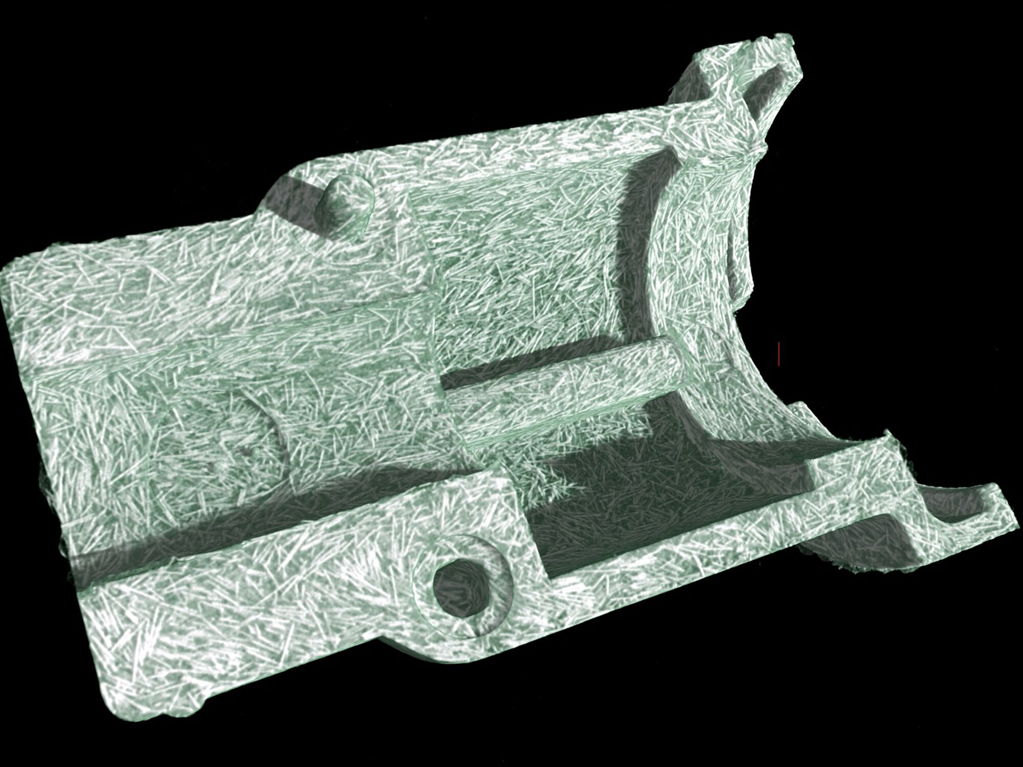 Ved at CT scanne emnet blev det synligt, at mikrokomponenten indeholdt luftindeslutninger. Scanningen dokumenterede desuden fiberstrukturen i emnet. Til sidst blev der lavet geometrisk opmåling af emnet ud fra geometriske produktspecifikationer (GPS tolerancer).