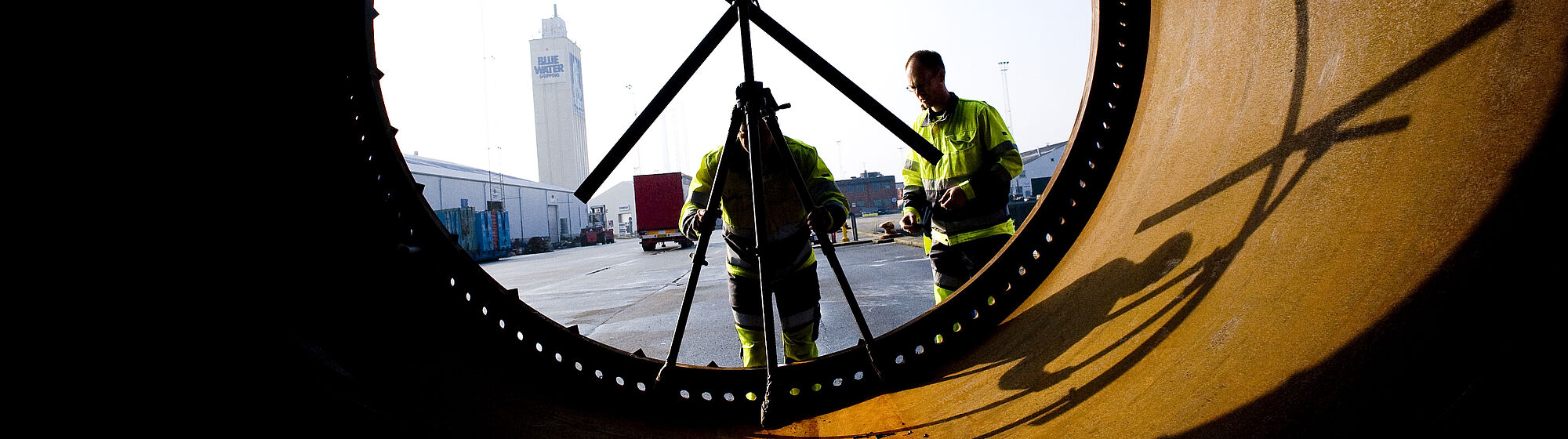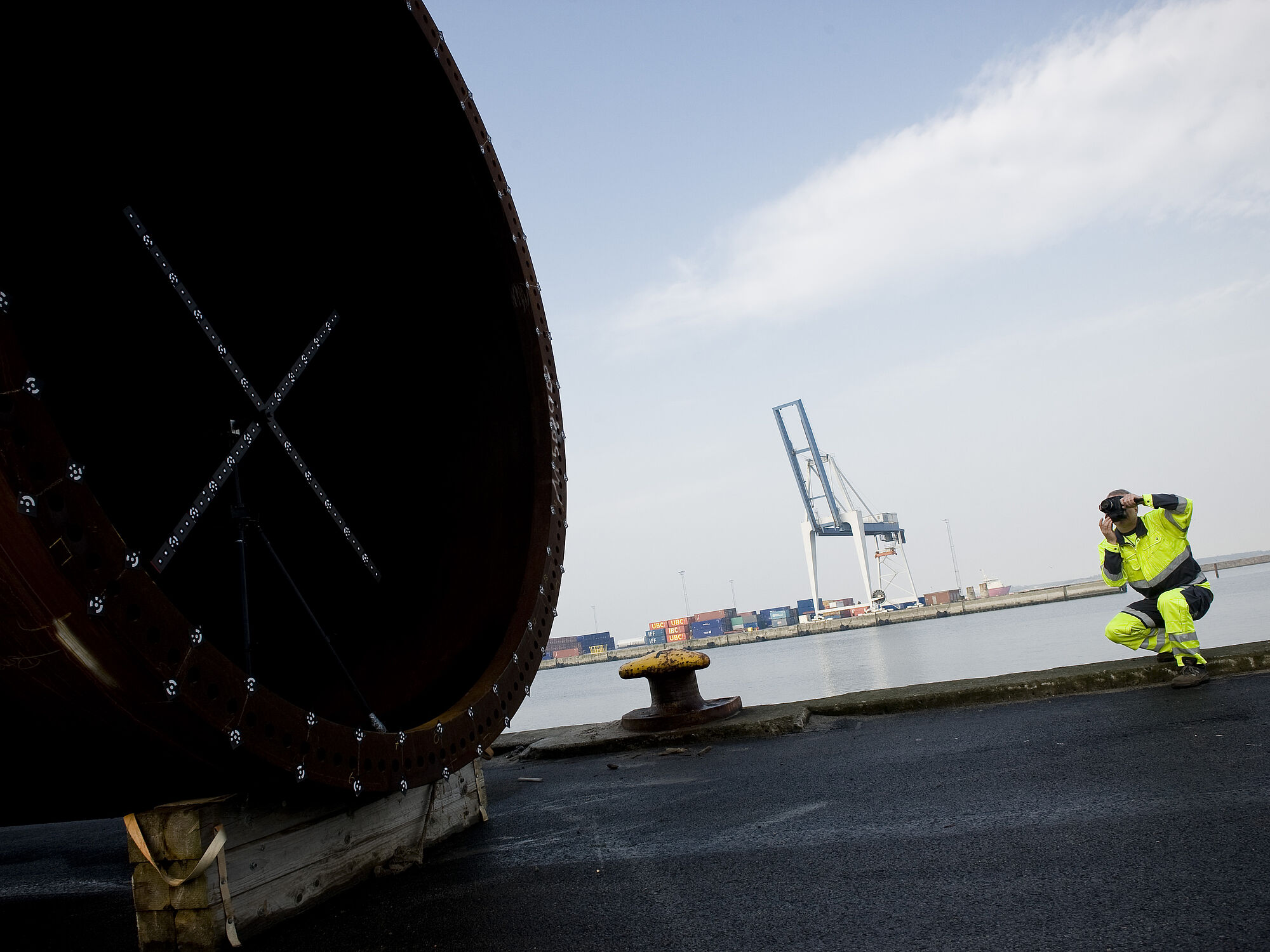 Vestas Towers A/S sender Zebicon på Esbjerg Havn for at lave optisk koordinatmåling af en tårnsektion.