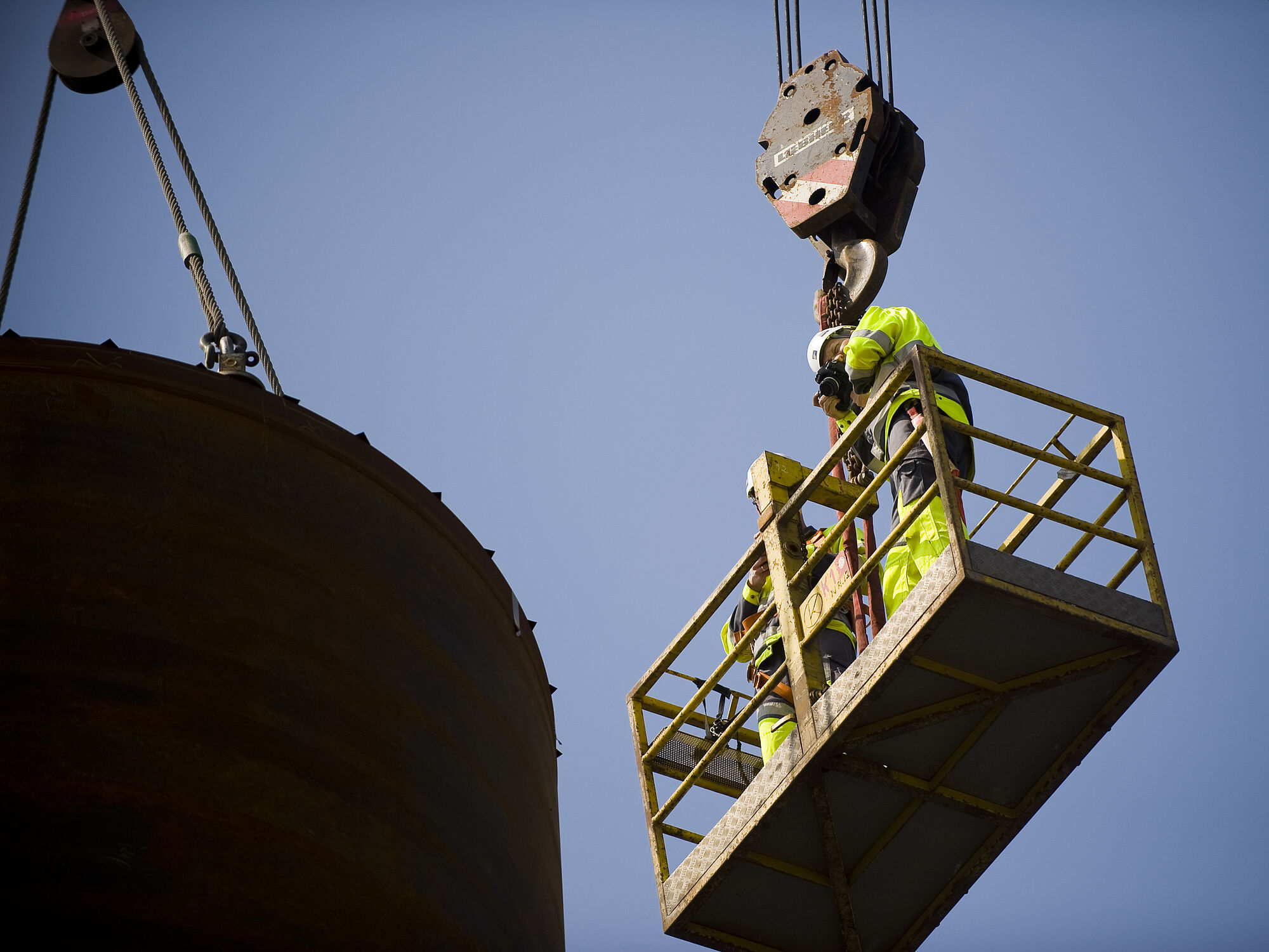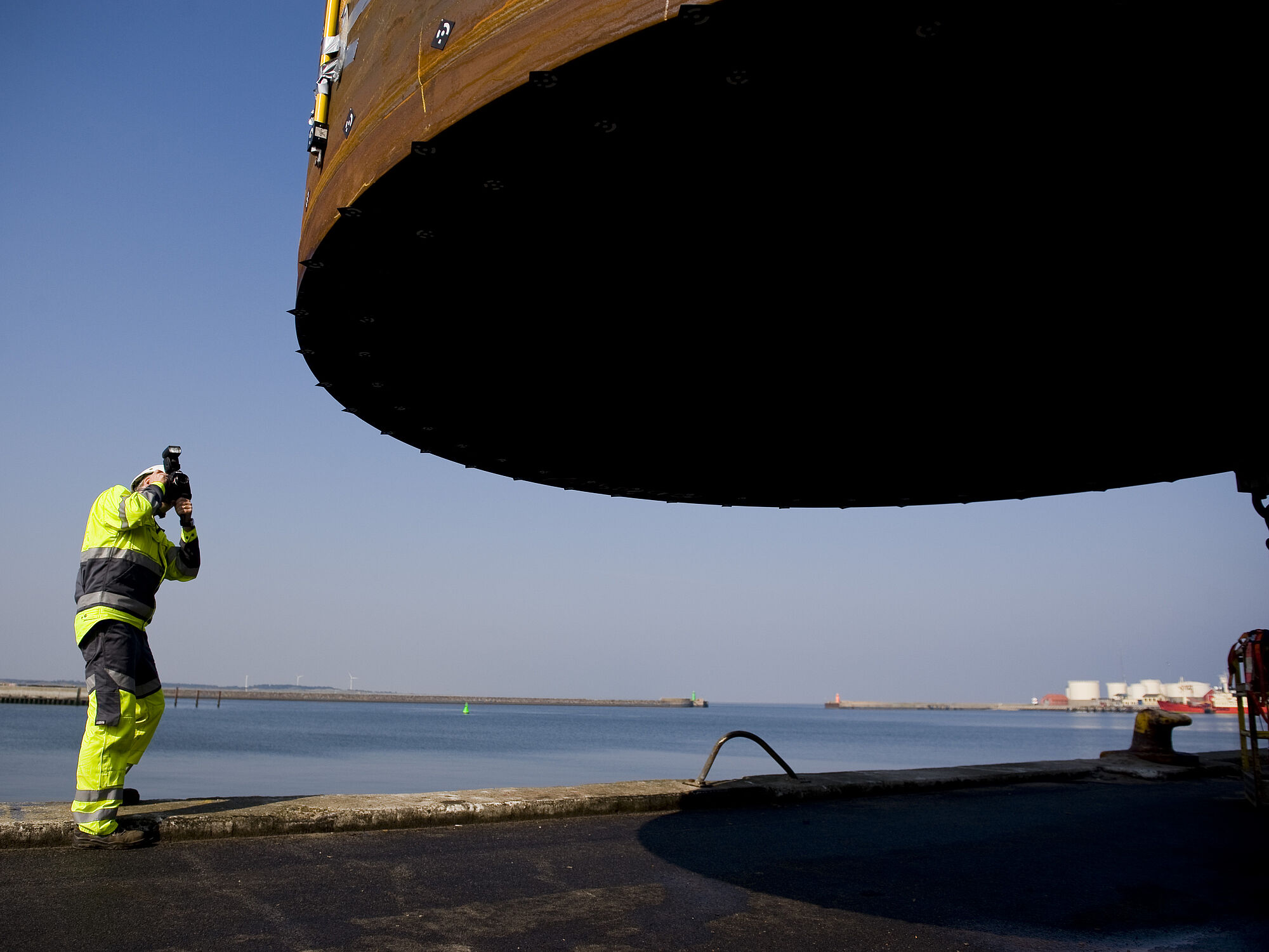 To måleteknikere fra Zebicon brugte 4 timer på at løse opgaven for Vestas Towers, der både bød på målinger siddende på jorden ved havnekajen og i 25 meters højde.