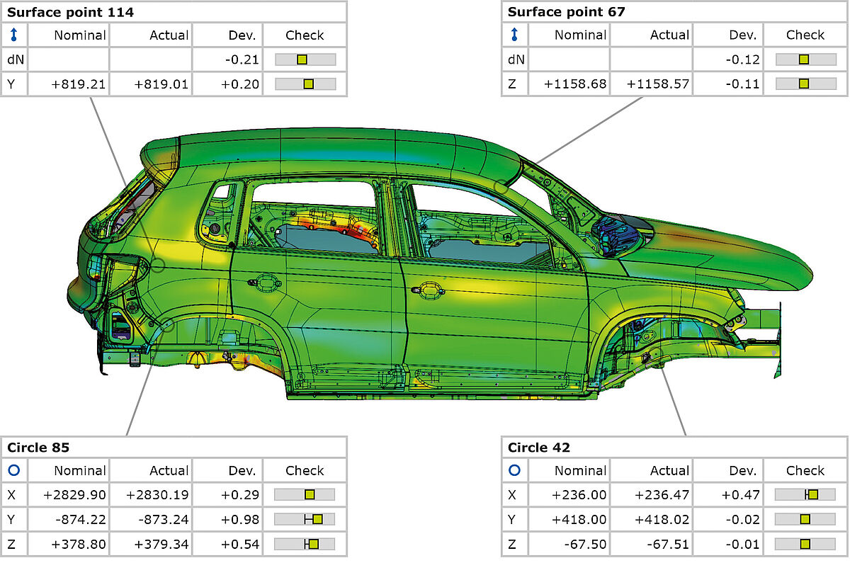 Before mounting of physical parts, the scans can be virtually assembled. It is thus possible to gain information about undesirable cracks and gaps at an early stage.