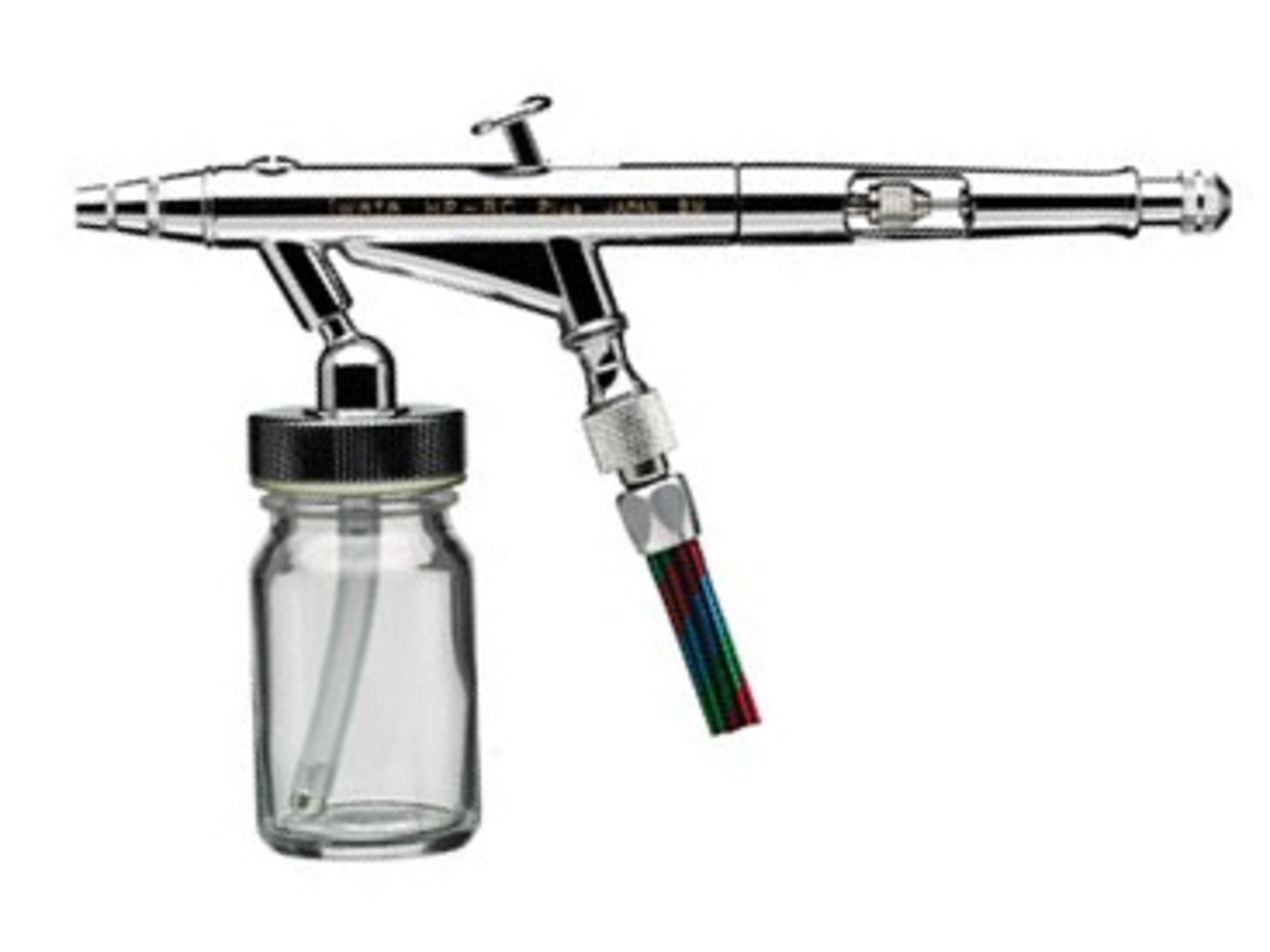 An airbrush is used to apply a thin layer of coating on the surface of parts before scanning. It is recommended to use a high-performance airbrush for small and very detailed parts.