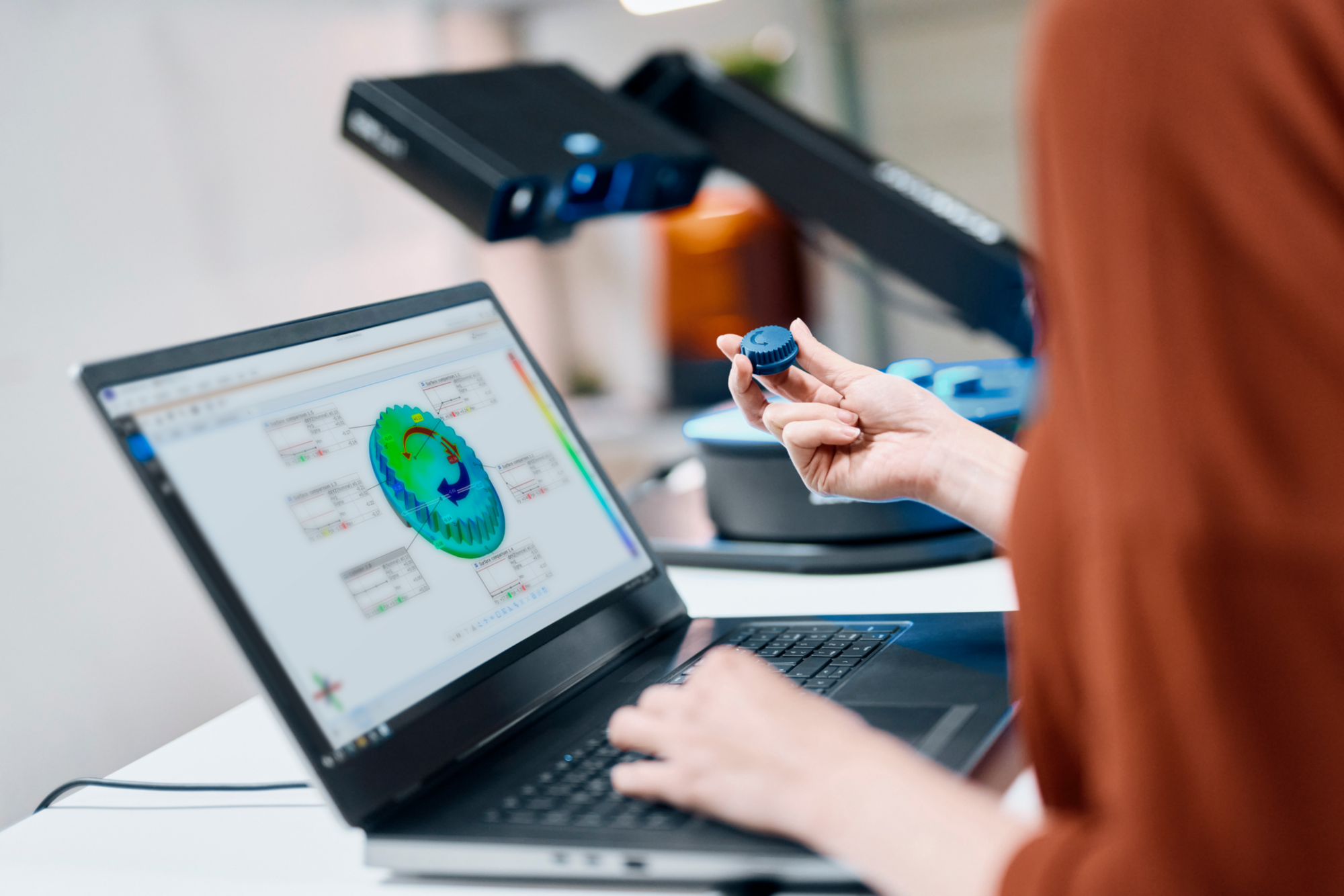 Begge 3D scannere, der bruges sammen med ZEISS ScanPort, bygger på avanceret teknologi som Blue Light og Fringe Projection, som sikrer høj præcision og skarp datakvalitet – selv på detaljerede eller komplekse overflader. Systemet kalibreres automatisk med en DAkkS/ILAC-certificeret hyperscale, så du er sikret stabile og pålidelige resultater hver gang.