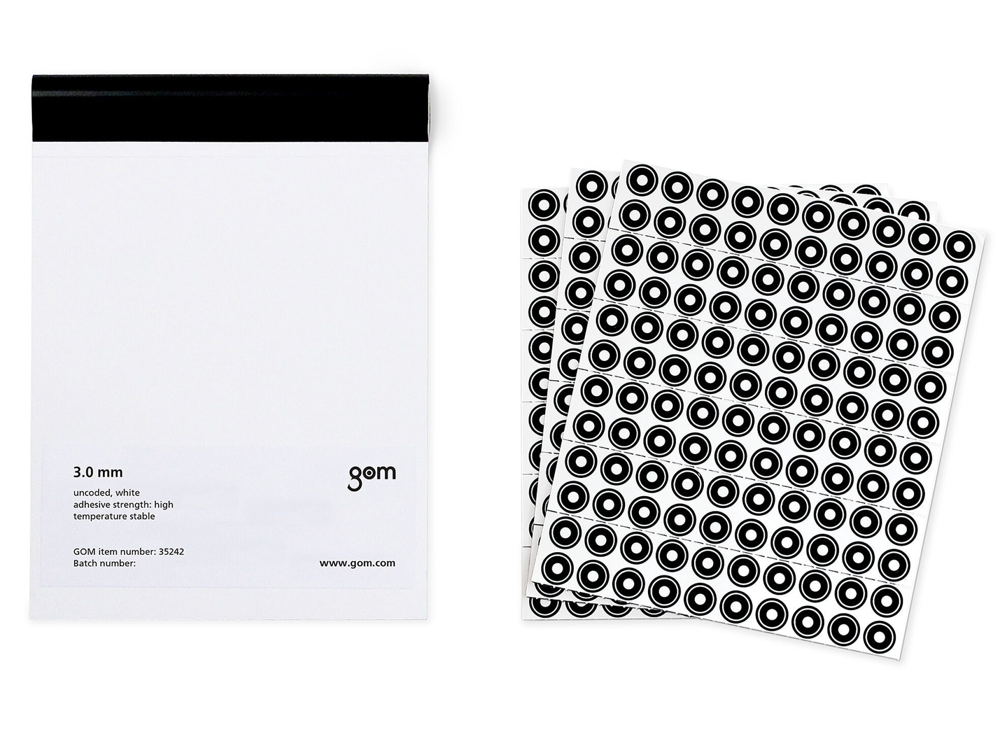 Størrelsen på referencemærkerne afhænger af hvilken 3D scanner og hvilket målevolumen, der anvendes til opmåling af emnet.