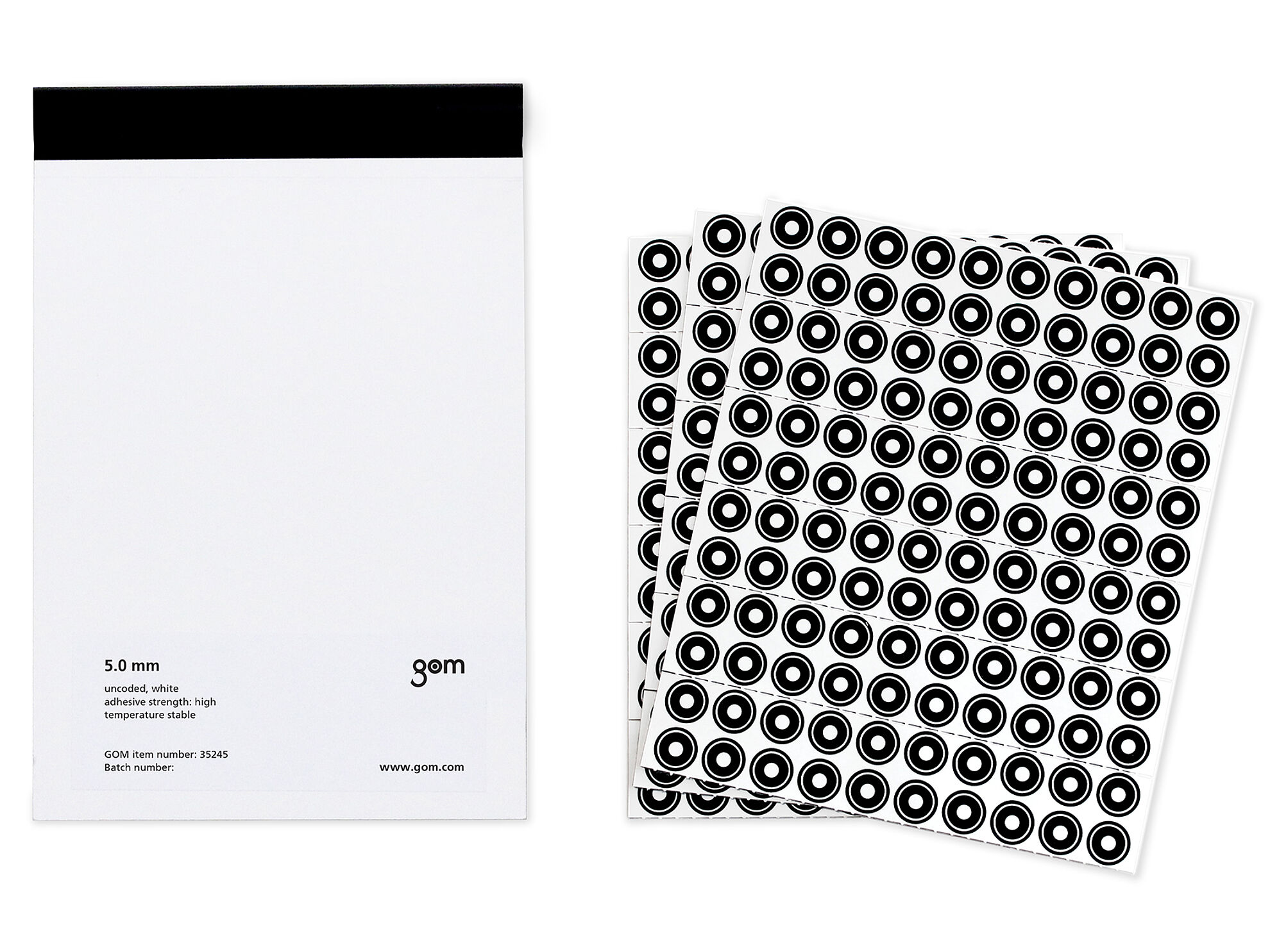 Referencemærkerne - Low har en lav klæbeevne, hvilket gør, at de er lette at fjerne fra emnet efter opmåling. Low er velegnet til skrøbelige emner.